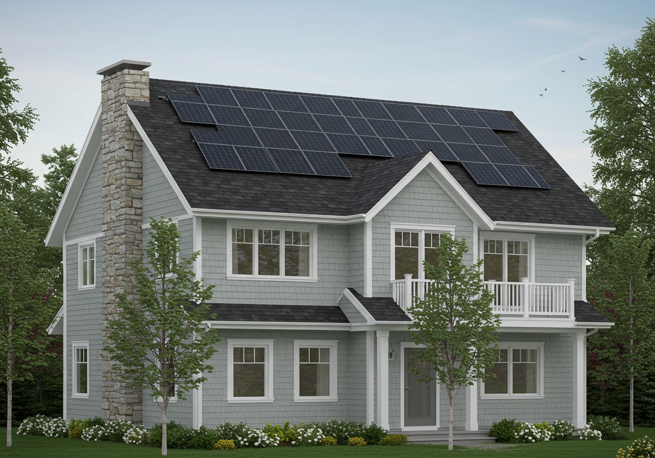 Does it boast sustainable features like solar panels or an electric vehicle charging station?